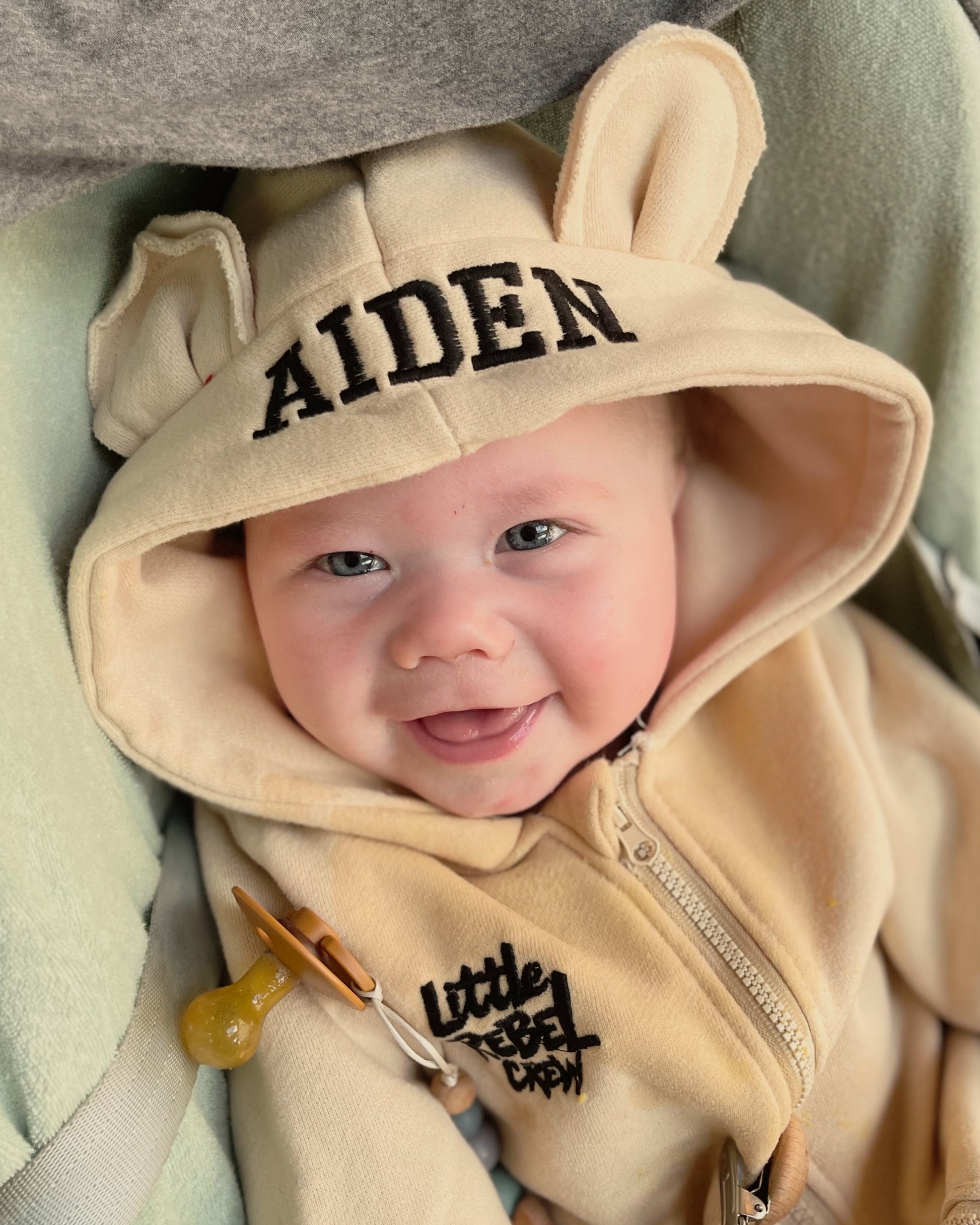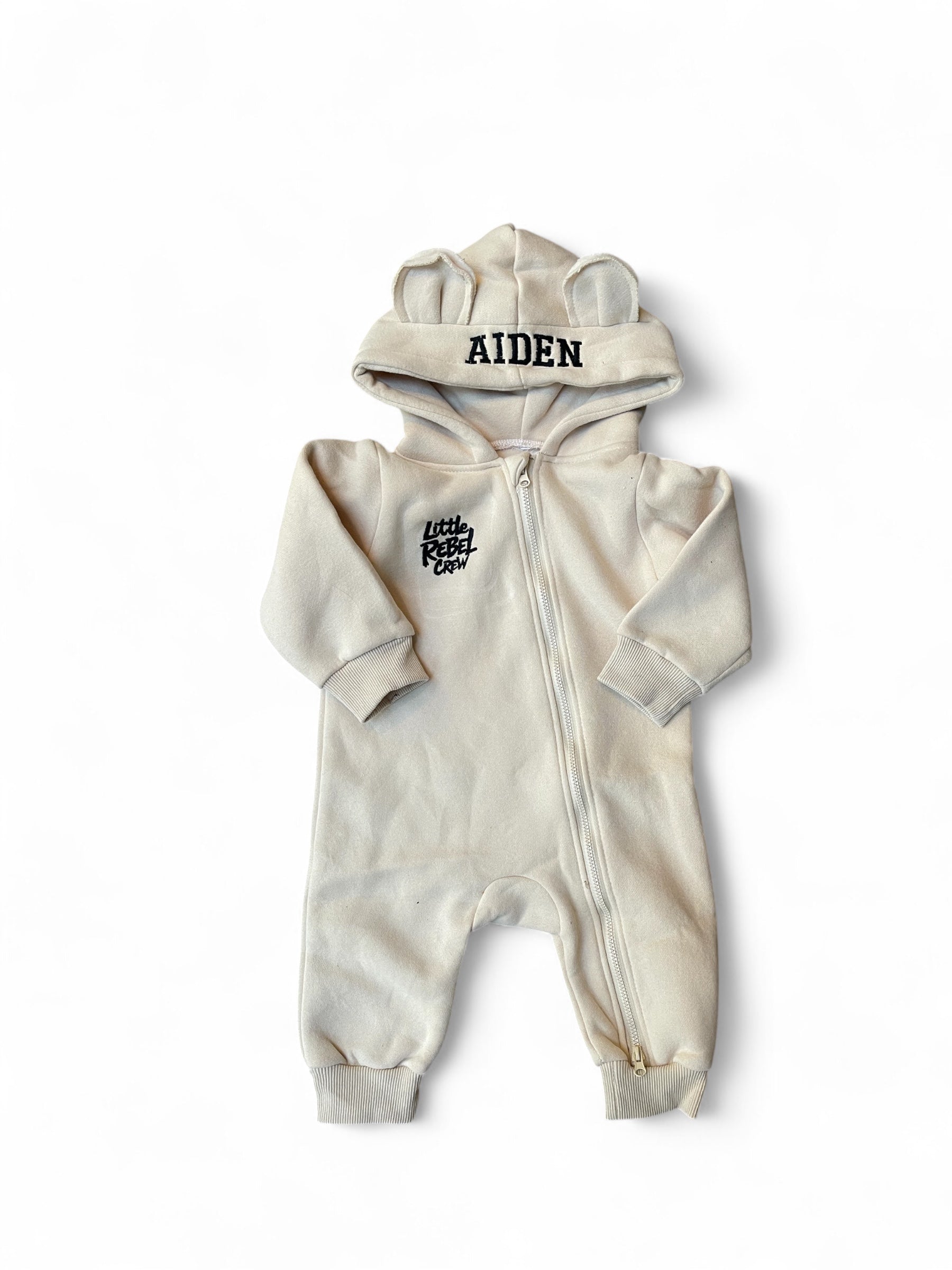 Laat je kleintje stralen in dit superzachte taupe boxpakje van 100% katoen, speciaal ontworpen voor de allerkleinsten. Met zijn schattige capuchon met oortjes en de stoere opdruk “Little Rebel Crew” is dit pakje een echte eyecatcher. Wat dit baby boxpakje extra bijzonder maakt? Je kunt het laten personaliseren met de naam van jouw baby!